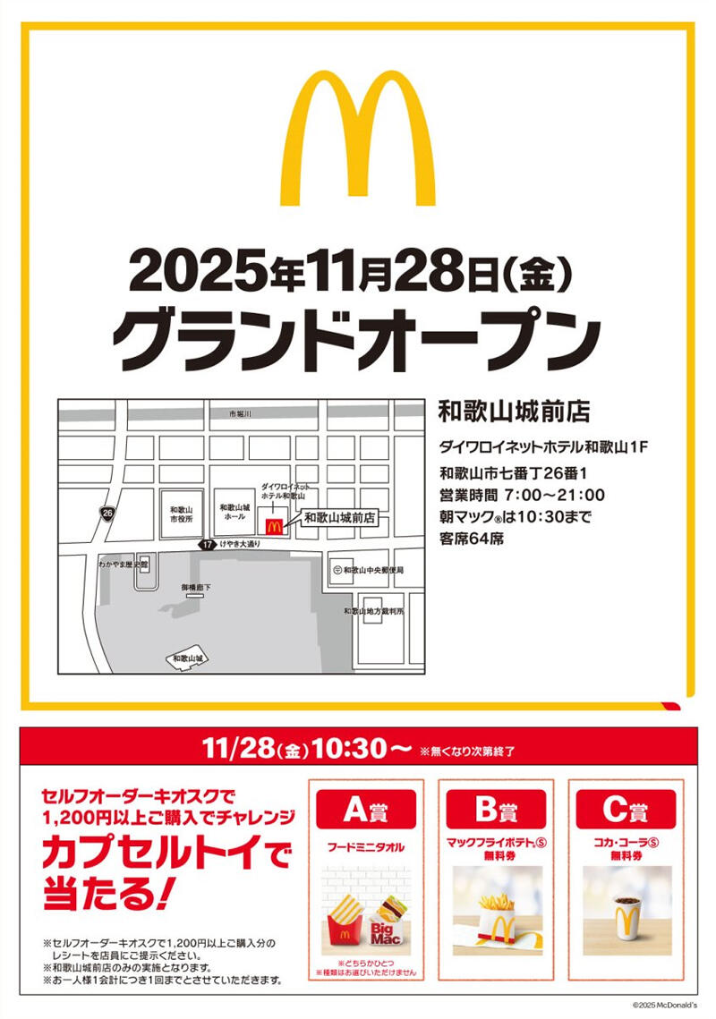2025年11月28日(金)マクドナルド和歌山城前店グランドオープン!